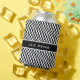 Add your name, or that of a friend, to the editable region of this template for a fun, unique gift. If you want to stop there, you may. Alternately you can click "customise" and change your font, or even re-position the personalised element in this design. // Your personal details appear over a white-bordered-black-band. Under that, and covering the entire surface of the design, is a curvy, vertical black and white pattern with a retro vibe.