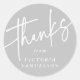 Elegant, round, personalised thank you stickers/labels featuring a handwritten script - can be used for any occasion. Perfect for dressing envelopes or favours/gifts. The background colour can be changed and the large ‘thanks’ typographic image can be re-sized and moved if you wish. The rest of the text is completely editable, so the font style, size, colour and placement can be changed to suit your needs. A version with black typographic overlay/text and other sticker shapes are available in my store.