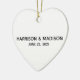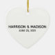Personalised Custom Couple Name and Date Wedding Heart Ceramic Ornament.