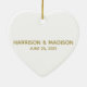 Personalised Custom Couple Name and Date Wedding Heart Ceramic Ornament.