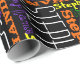 Put the birthday kid's name all over this exciting colourful neon on black wrapping paper. Vibrant assortment of colours and fonts with first name or chosen word repeated allover. Giftwrap paper decorates any birthday or all occasion gift. Designs feature special papers, in your choice of lengths on roll. Exquisitely designed and printed paper, Made in the U.S.A., using recyclable raw materials, so you can feel good about entertaining and dressing wrapping presents. Bring convenience and style in your home and social life. This wrapping paper is heavy duty and high quality, and just the right amount and good size of paper for gifts, also feels good to the hand. A gorgeous print that is very good quality, thick and resistant, making gifts look cool and snazzy, and good for many occasions. This is some beautiful, great looking wrapping paper.