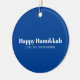 Happy Hanukkah blue and white modern typography minimalist personalised Hanukkah ornament.