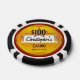 Add your name to this fun and creative poker chip, great for games at home or for corporate charity events. Gold and red background with stars and your choice of dollar amount denomination. Example is for "Christopher's Casino, Your City and Your State". Make this chip for $100, $50, $25, $10, $5, $1 or any other amount. Include your city, or a famous gambling city like Las Vegas, NV, Atlantic City or a Cruise Ship casino. 100% totally customisable personalised for your gambling night or poker tournament, just like a real casino quality professionally printed keepsake.