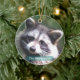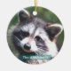 Custom Racoon Christmas photo Ornament. Text on a semitransparent teal background only on the front side. Ideal for everyone!