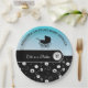 Blue and black, welcome to (add name) baby shower, cute as a button baby shower paper plates.