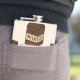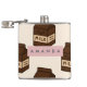 The flask itself is fine. It’s a cheap flask, obviously bought in bulk, however am prepared to overlook that. Given that it is a personalized item, I would have liked to have seen gift boxing instead of the generic packaging. Terrible printing, and/or quality. It’s a cheap, tacky vinyl. It is not cut straight and is also applied in a way that it is overhanging the bottom, causing the glue to catch on items and it will eventually roll and tear, damaging the wrap.