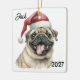 Personalised Cute Christmas Santa Pug Ceramic Ornament