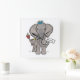 A sweet illustration of an elephant and baby. The baby is holding up a cupcake covered in sprinkles and they are both wearing crowns.