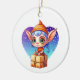 Adorable little elf holding a Christmas present with a cute hat on personalised Christmas ornament.