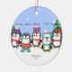 Personalised Cute Five Penguin Snow Scene Ceramic Ornament