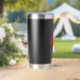 The design is comprised of a line drawing of a cute French bulldog holding onto a red heart. With your personalised text, it makes a unique Frenchie dog lover Insulated Tumbler.