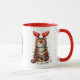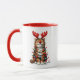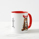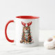 This Adorable Funny Cute Cat Christmas Mug features a Silly Mischievous Cat. This Whimsical Kitty has a Big Red Rudolph Nose, Deer Antlers, and is tangled up in Christmas Lights. Perfect for Cat Lovers who appreciate a little Holiday mischief! Personalise this Cat Christmas Mug by Adding Your Own Name.