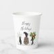 This design features three penguins among various symbols of the winter season: a snowflake, pine cone, and holly. The humourous animal illustration with personalised text makes cute funny and unique paper cups.