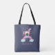A cute persoanlized girls pink and purple rainbow unicorn tote bag. Personalise it for a gift for a little girl. Designed for you by Blackberry Boulevard.