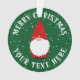 Personalised cute gnome Christmas photo Ornament. Funny Holiday design for friends, family, couple, boyfriend, girlfriend, kids, new baby etc. Upload your own custom photo image on the back. Scandinavian troll drawing with snow and custom picture on the back side. Double sided print with ribbon. Green or custom background colour.