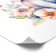 Baby nursery room art with a cute watercolor elephant surrounded by pink and coral flowers. Add name in the personalise area.