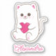 Cute illustration of a white cat holding a pink heart.