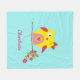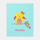 Personalised Cute Owl Yellow Pink Illustration Fleece Blanket
