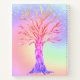 This pretty notebook is decorated with a tree and background in rainbow colours and sparkling stars.
