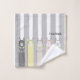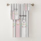 The product design features an illustration of retro colourful decorated llamas. This adorable animal design with white stripes makes cute modern and unique bath towels with personalised text and background colour.