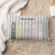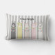 The product design features an illustration of 5 retro colourful decorated llamas. This adorable animal design with white stripes makes a cute modern and unique lumbar pillow with personalised text and background colour for nursery, kids room, and more!
