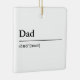 Personalised modern Christmas Ornament for Dad, featuring Dad, Daddy or Father on the front in minimalist black typography and the definition of Dad on the back, add the kids names below. You can customise the text with the templates provided, but if you enter the Design Tool you can also change the background colour to match your favourite Christmas Decoration Colour Scheme. Unique Christmas gift for the best dad ever! Create a truly special Christmas Ornament for Dad in clean and simple design, sure to stand out.