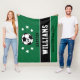 Personalised Dark Green Soccer Player Name Fleece Blanket