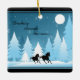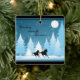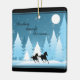 This holiday Christmas ceramic ornament features two silhouette horses Dashing Through the Snow under the light of a full moon. -