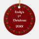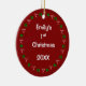 You can change everything about this customisable ornament except the crossed candy canes and green bows. Change the background colour to any other colour you prefer, the style of font, it's size and colour. the 1 and st are separate so that can easily be changed to 2nd, 3rd, etc. The text boxes can also be moved / adjusted as needed. This keepsake ornament can also be used for a married couple's XX Christmas.