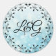 Pretty blue and black floral decorative stickers for wedding invitations.