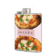 The flask itself is fine. It’s a cheap flask, obviously bought in bulk, however am prepared to overlook that. Given that it is a personalized item, I would have liked to have seen gift boxing instead of the generic packaging. Terrible printing, and/or quality. It’s a cheap, tacky vinyl. It is not cut straight and is also applied in a way that it is overhanging the bottom, causing the glue to catch on items and it will eventually roll and tear, damaging the wrap.
