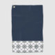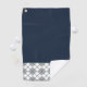 Monogram golf towel, featuring a modern design in blue, white, and grey. We offer a matching golf head cover.