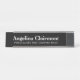 Personalised desk name plate with custom job title or professional company name. Make your own with a custom name and formal job function like executive producer, manager, ceo, doctor. Elegant typography template. Perfect for business boss, office employee, coworkers, colleagues, coach, school teacher, dean, principal, office workers, real estate agent, director, dentist, producer, receptionist, attorney, lawyer etc. Available in silver, rose gold and black colour. Add your own logo optionally.