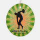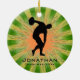 Discus Thrower Personalised Ornament Christmas 20XX. An discus thrower gets into position against a green and orange starburst background. All text customisable, front and back!