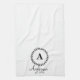 Personalised with Monogram and Family Name Dish Towel, great for housewarming gifts, for your kitchen. With wreath in black and white.