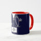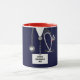 Unique doctor appreciation, graduation, birthday or holiday gift mug, featuring creative navy blue hospital scrubs, stethoscope and funny Swiss Army knife. Edit text to add name or monogram initials of physician.