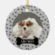 Cute personalised Dog Photo Ornament featuring a grey & black bone & pawprint pattern with a dog bone element to add your pet's name .