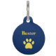 Personalised Dog paw print blue and yellow pet ID tag, with customisable yellow and blue lettering. Great for keeping track of your furry friend!