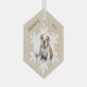 Personalised Dog Pet Name Photo Snowflakes Glass Ornament. You can personalise it with your pet photo, name and year. Insert your favourite dog photo. You can use this custom ornament for any pet. The ornament is in gentle beige colour with a snowflake. Great keepsake for you or a gift for your family and friends.