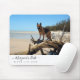 Gorgeous Personalised Dog Photo Mouse Pad. Modern airy design by Simon & Grace. Personalise with your own photo and text. Excellent gift or great item to brighten up your own desk. Sample photo features a beautiful purebred German Shepard dog on driftwood tree at the beach. Sample text is shown in black on white.
