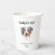 These Australian Shepherd dog wedding paper cups are the a great way to include your pet in your wedding. This design is complete with the saying "Drinks On Me!", the dog's name. the bride and groom names, the date, and an adorable dog graphic. I have many other dog breeds available in my store.