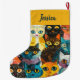 Add a touch of playful charm to your holiday décor with this Personalised Modern Whimsical Cat Design Large Christmas Stocking!