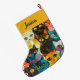 Personalised Double Sided Whimsical Cat Design Large Christmas Stocking