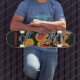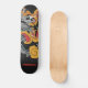 Personalised bold Asian art dragon skateboard with your name in a red sans serif type. Bold red orange and black.