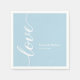 The napkins feature a beautifully crafted "Love" script with long-tailed embellishments, lending a romantic and graceful feel to your table setting. The dusty blue colour motif is both trendy and timeless, fitting seamlessly into a variety of wedding themes and styles.