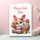 Cute Easter bunny card with bonus colouring page on the inside. Adorable whimsical Easter bunny, eggs and basket card for children. Add name in the personalise area.