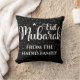 قم بتخصيص وتخصيص اسم العائلة الخاص بك بنجوم ذهبية عصرية لطيفة على وسادة العيد بخلفية سوداء من أرابيسك.