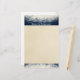 The top and bottom borders are a fancy elegant abstract design with cream coloured lace and pearls made with circles and bubbles. The background is dark blue with faded squares off to the side. Pretty and delicate design. The writing area is a parchment coloured paper. Customise / personalise with your name.