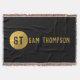 Personalised Elegant Black & Gold Modern Monogram Throw Blanket