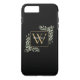 Personalised Elegant Black Gold Monogram Greenery Case-Mate iPhone Case